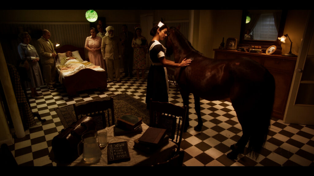 Algo similar ocurre en Cipactli: la diosa cocodrilo (El Salvador, 2025), que anima petroglifos salvadoreños y devuelve movimiento a lo que la historia oficial dejó inmóvil. También en Un caballo en la alcoba (Colombia, 2024), donde la cercanía con la muerte se cruza con el absurdo y el humor. Allí la risa no alivia de manera superficial. La risa transforma el miedo.